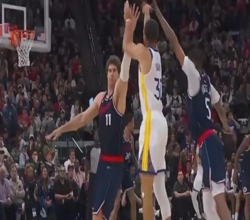 勇士的反击依旧出现在第四节,比赛还剩9分钟左右,前三节9投2中仅得7分的库里命中了一个飘逸三分球,意图吹响勇士的反击号角。